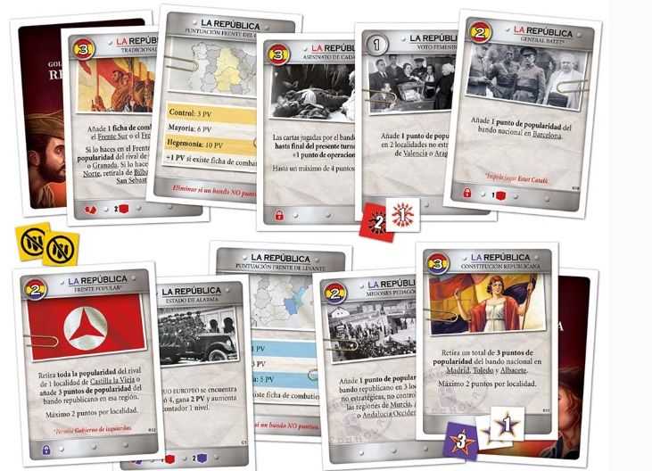El juego representa todos estos acontecimientos de esta época tan convulsa en la historia de España que hizo desembocar en una sangrienta guerra civil el destino de la nación. España no estaba aislada del resto del mundo y en especial de la vieja Europa por lo que fue víctima de las tensiones del llamado periodo entreguerras. Durante el desarrollo de una partida, un jugador en el Bando republicano, y otro en el Bando nacional, podrán recrear acontecimientos de la época para aumentar su popularidad en las localidades mediante la realización de propaganda política, reclutar tropas o milicias, generar revueltas o asaltos, entablar relaciones diplomáticas o llevar a cabo cruentos bombardeos. Todo esto lo harán jugando su mano de cartas de forma alternativa bien incrementando los eventos o jugando los puntos de acción o los iconos para realizar cualquiera del resto de acciones de las que disponen los jugadores.