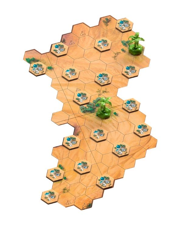 Los jugadores compiten por construir caravanas de camellos de colores vivos, conectando abrevaderos, reclamando oasis y bloqueando a sus oponentes para asegurarse territorios valiosos.