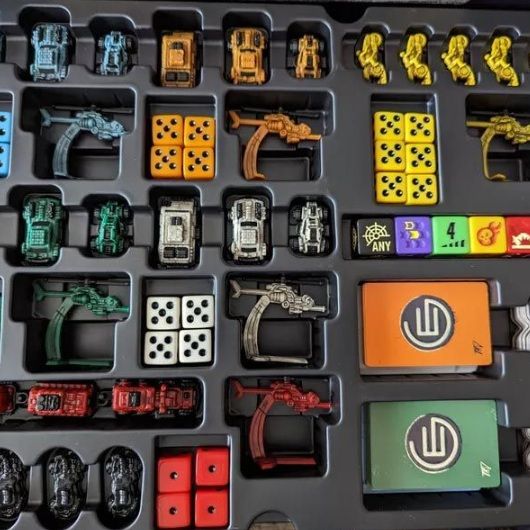 La miniexpansión German Engineering ofrece una nueva forma de jugar, sustituyendo los dados de movimiento y disparo por una mano de cartas. El líder de equipo Em Berco combina características de Choppe Shoppe y Carnage para garantizar una experiencia de juego apasionante. Además, obtienes un libro de reglas consolidado que incorpora las reglas de todo el contenido del juego en un solo lugar con referencias cruzadas adecuadas para facilitar su uso. Y todo ello viene almacenado en un inserto de plástico personalizado para mantener todo en su sitio y una caja estampada en foil que tiene un aspecto muy elegante.