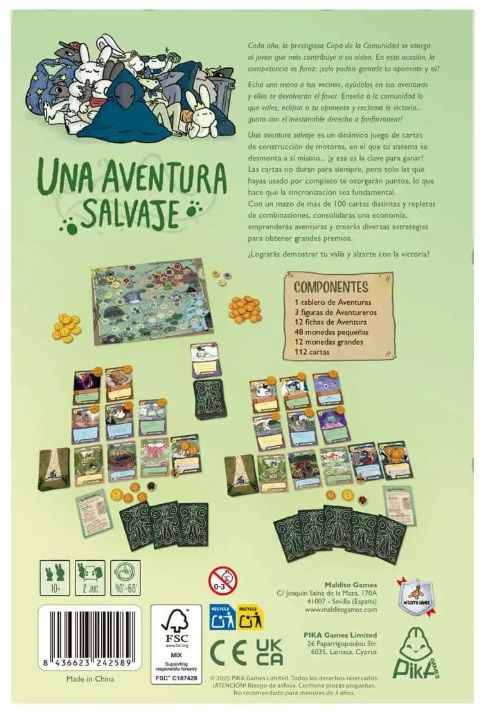 Una aventura salvaje es un dinámico juego de cartas de construcción de motores, en el que tu sistema se desmonta a sí mismo… ¡y esa es la clave para ganar! Las cartas no duran para siempre, pero solo las que hayas usado por completo te otorgarán puntos, lo que hace que la sincronización sea fundamental. Con un mazo de más de 100 cartas distintas y repletas de combinaciones, consolidarás una economía, emprenderás aventuras y crearás diversas estrategias para obtener grandes premios.