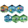 Además, se incluyen nuevos componentes para representar los edificios mejorados, de manera que en lugar de apilar dos fichas de edificio, ahora simplemente cambiaremos un edificio por su versión mejorada, de mayor altura.