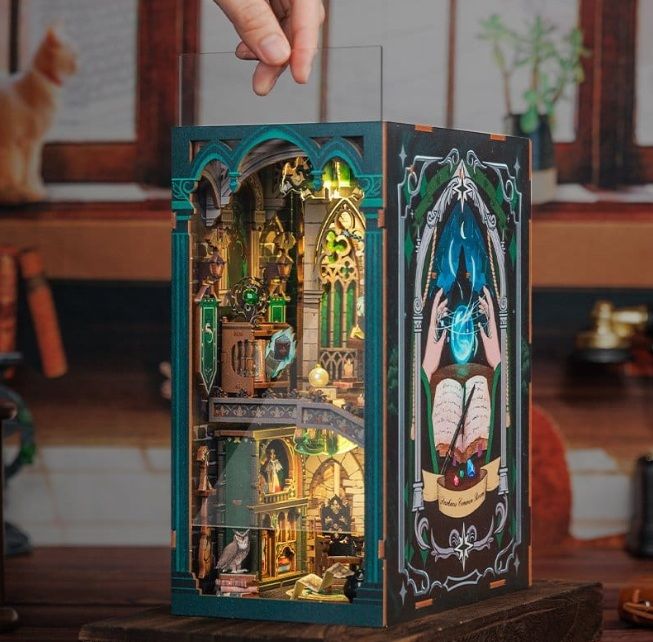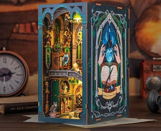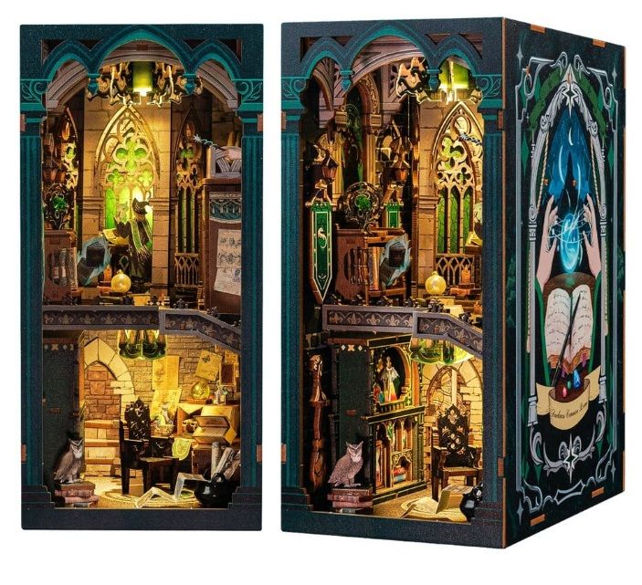 La maqueta Book Nook Darkness Common Room es un kit de diorama para montar que recrea una mística sala común mágica inspirada en el universo de la fantasía oscura.