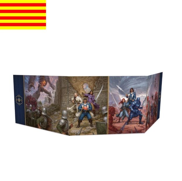Una lujosa pantalla para la Directora de Juego en formato apaisado para el Juego de Rol del Cosmere, basado en El Archivo de las Tormentas, la épica serie de fantasía de Brandon Sanderson.