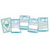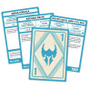 El nombre del conjuro y la información importante se muestran visiblemente para una referencia rápida. El texto descriptivo y mecánicas de juego aparecen al completo siempre que es posible, cuando no ha sido posible, se indica la página del libro para consultar. Los hechizos con mejoras tienen un apartado añadido que explica dicha mejora. El reverso de las cartas indica visiblemente el nivel del conjuro para facilitar la consulta.