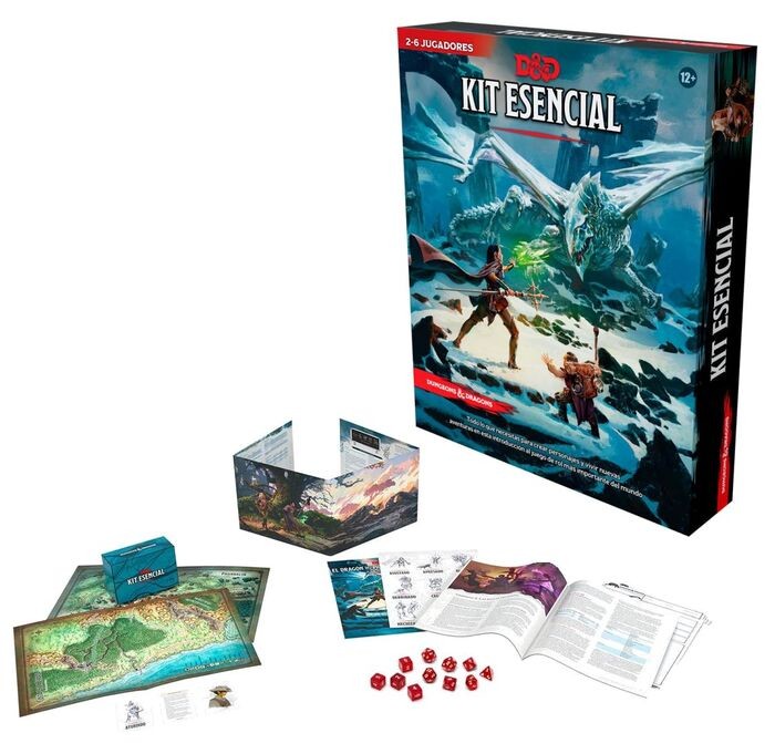 El kit de D&D Essentials incluye: Libro de reglas "esenciales" de 64 páginas (incluyendo la generación de caracteres) Dragon of Icespire Peak, una nueva aventura de Chris Perkins Pantalla de 4 paneles de paisaje DM Mapa de póster de doble cara con la ciudad de Phandalin en un lado y la región local de la costa de la espada en el reverso. Tarjetas de búsqueda, tarjetas PNC, tarjetas Magic Item, tarjetas, tarjetas... Juego de dados de cristal rojo con 2d20 y 4d6 Hojas de caracteres en blanco Incluye una clave para desbloquear el contenido de aventura en D&D Beyond y un 50% de descuento en el Manual del jugador digital.