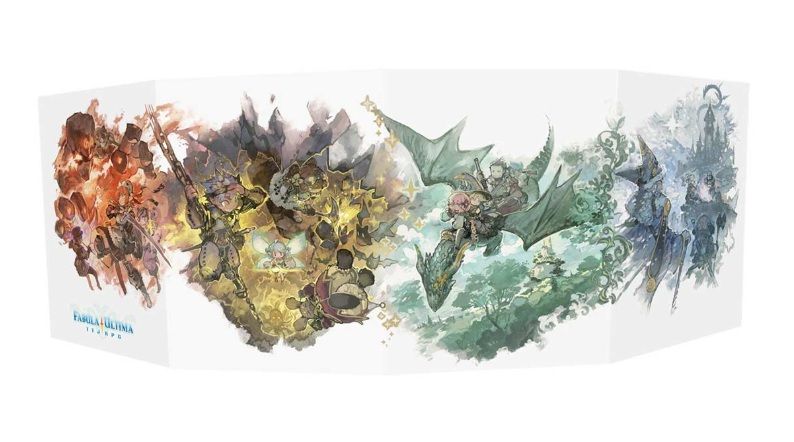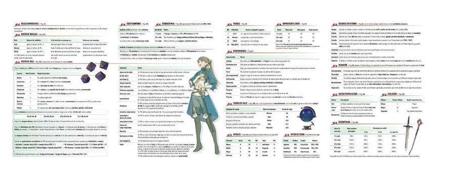 Pantalla de cuatro paneles, muy inspirada en los JRPGs y bellamente ilustrada por Takashi Konno y cuaderno de Master para el juego de rol Fabula Ultima